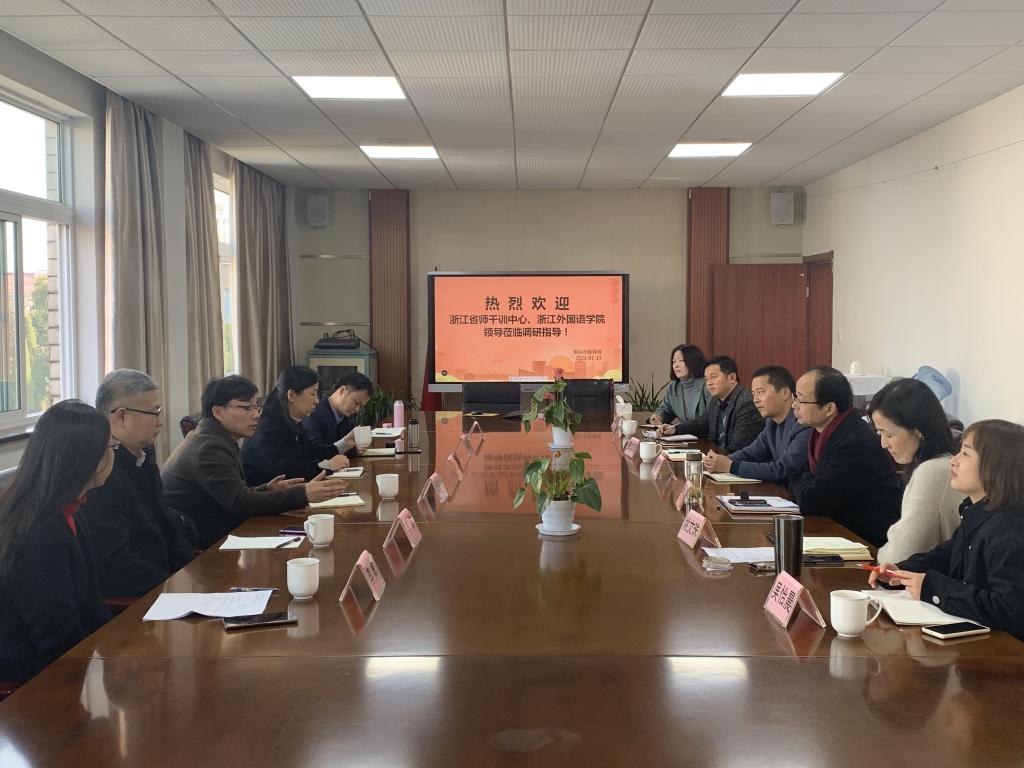 桐乡市教育局党委委员、副局长沈小炎,党委委员徐建方,以及人事科、职成教科、教师进修学校等相关主要负责人热情接待了调研组一行。座谈会上,双方围绕对接桐乡基础教育、师训干训、合作办学等方面的需求,发挥我校资源优势开展相关服务与合作事项初步交换了意见。