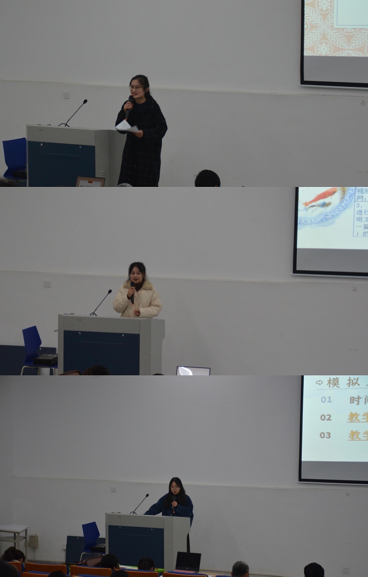 参加汇报展示的同学分做了师范生技能竞赛、全国师范院校师范生技能竞赛、公开展示课、教师考编经验分享和交流,各实习学校代表从教学、班级管理和教研的角度对实习工作进行总结。通过讲述自己的亲身经历,建议低年级师范生要注重专业知识的积累,多阅读、多背诵,拓展自己的知识储备,亦要针对自己的职业规划,提前了解自己目标岗位的上岗条件,不断提升自我专业素养。在场的同学认真聆听,现场气氛轻松热烈。