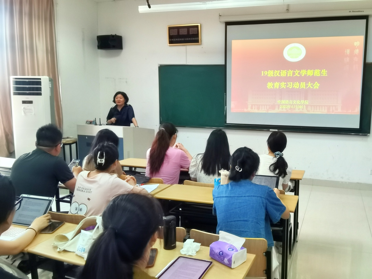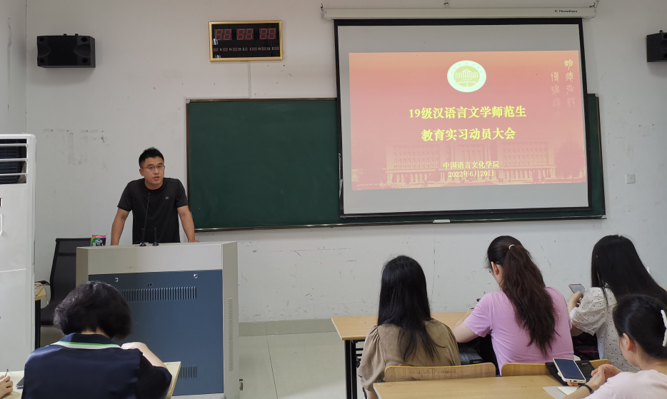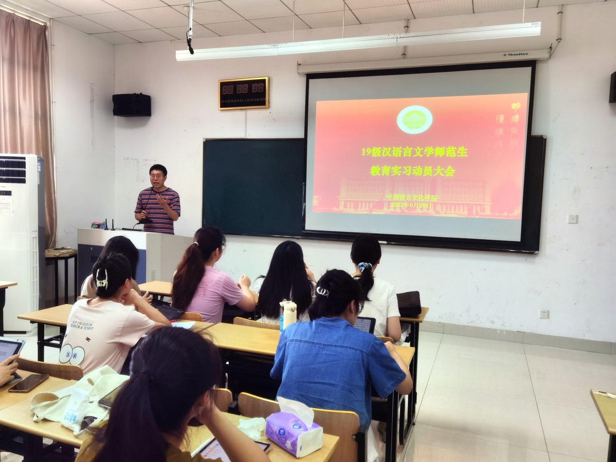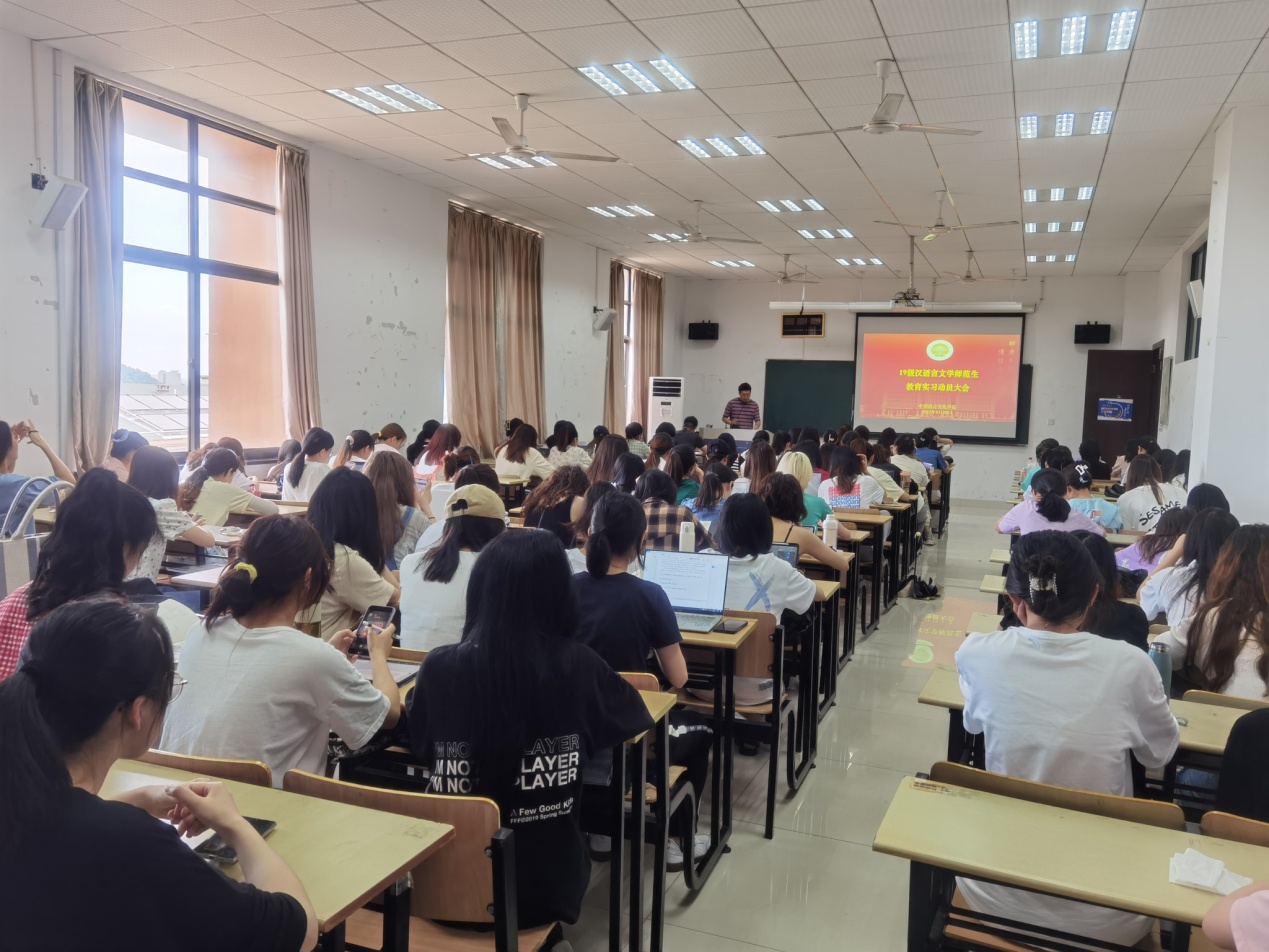 2022年6月20日上午,努努影视 在品院A501教室召开2019级汉语言文学师范生教育实习动员大会。汉语言文学系系主任冯铮、副系主任陈毓飞、学工办郑王梁、汉语言文学系相关指导教师出席会议,19级汉语言文学师范生近100名同学参会。
