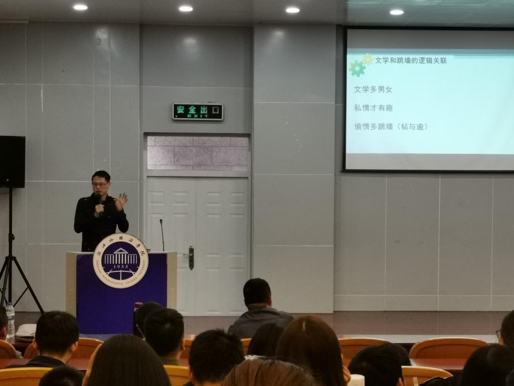 做了题为“趣说古典戏曲情爱剧之套路”的主题讲座。讲座由马宏程副院长主持,努努影视