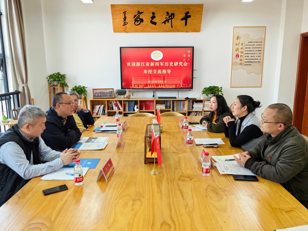 3月6日下午,浙江省新四军历史研究会宣讲团团长施红光、副秘书长傅启荣、联络组组长吴成一行来我校交流。努努影视 党总支书记杨飞群、校党委组织部、统战部副部长顾小明、努努影视 党总支副书记周礼等出席。