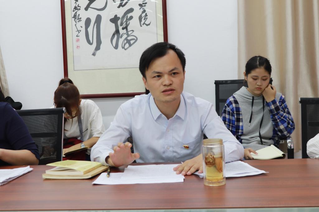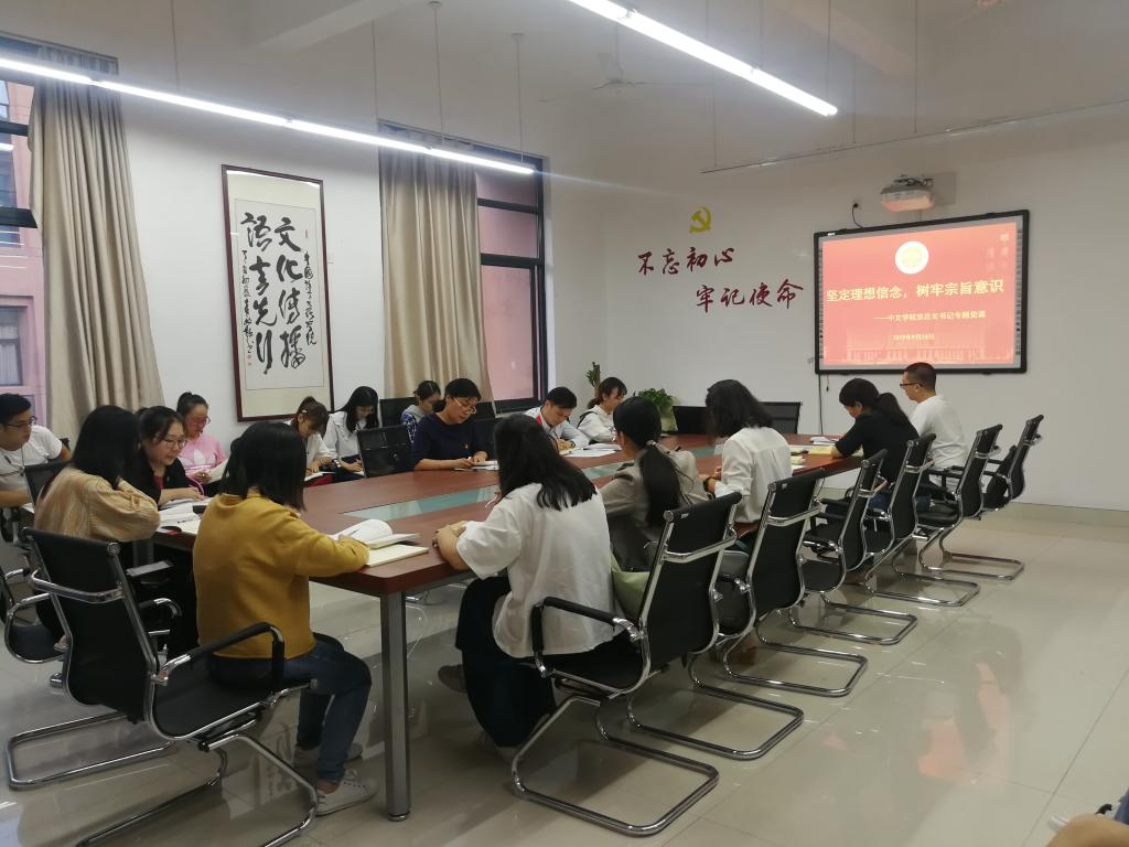 党总支书记黄莺以“坚定理想信念,树牢宗旨意识”为主题,开展“不忘初心、牢记使命”主题教育专题党课,党总支副书记陆卫斌主持,党总支委员、党支部书记、师生党员参加了此次党课学习。
