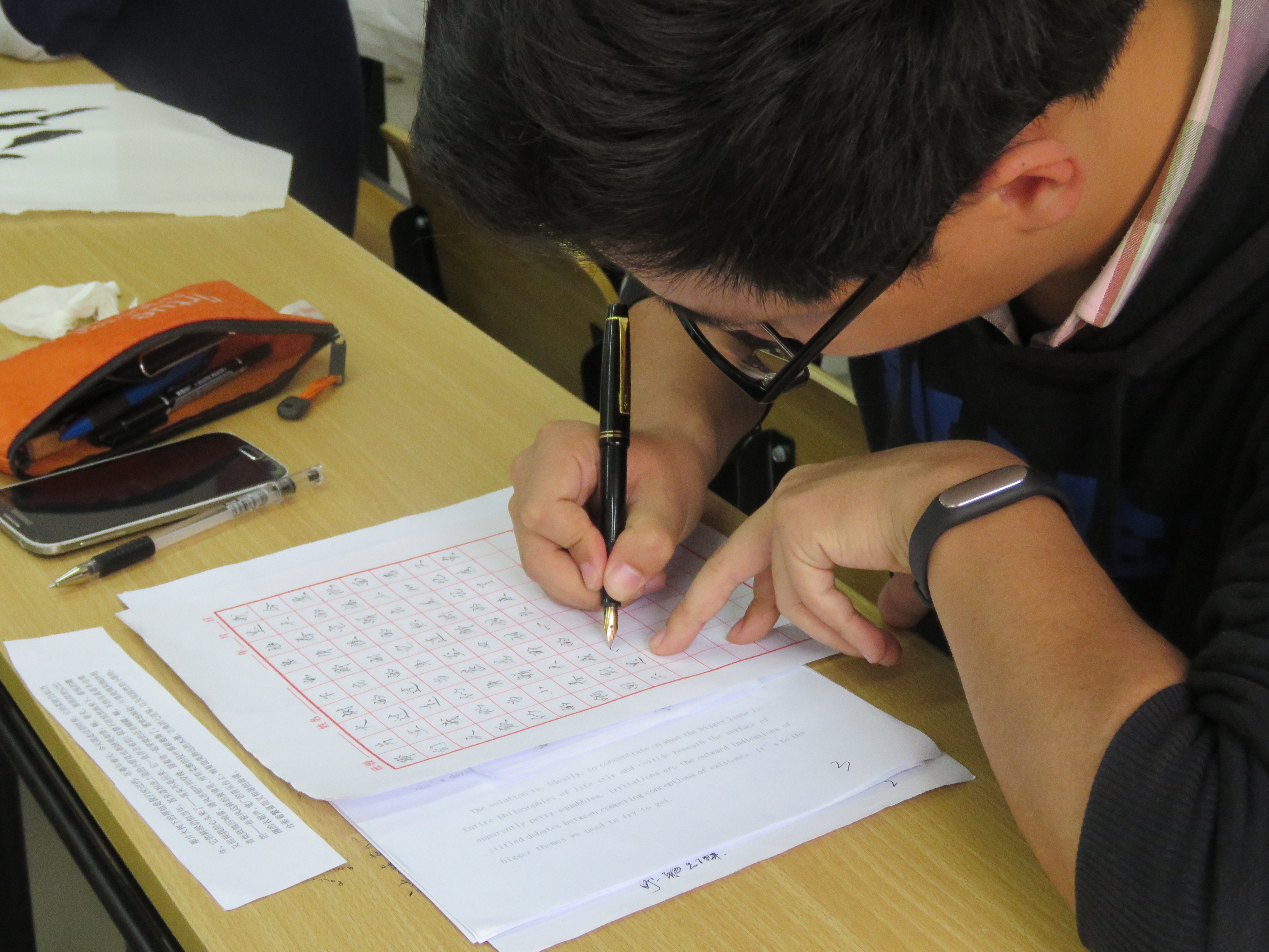 丹青笔会作为教师技能大赛的一部分,用笔墨展示了中文学子的儒雅和深刻内涵,创造了诗书古香的美好氛围。 首先进行的是钢笔字和毛笔字的角逐。由吴老师出题,选手现场完成创作,伴随古典乐曲,选手们挥毫泼墨,书写了一幅幅令人赞叹的佳作。之后的粉笔字比赛,选手风格多元,笔法浑厚,于黑板上书写古诗,笔落生花。全部环节结束后,评委做出简短点评,选手们受益匪浅。其中,姚依婷、叶汝佳、盛珂玮分获粉笔字一等奖、毛笔字一等奖和硬笔字一等奖。