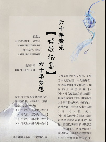 面向全校师生举办了“六十年荣光,六十年梦想”主题诗歌大赛。