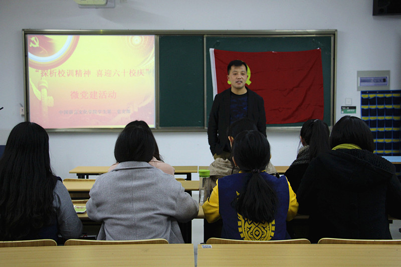 学生第二党支部举行了以“弘扬校训精神,喜迎六十校庆”为主题的第一期微党建活动。活动以QQ群、微信群交流,沙龙等形式对“明德弘毅,博雅通达”的校训精神进行了深入探析,得到了党员同志们的热烈回应。参加讨论的党员同志从如何弘扬、传承校训精神,校训和中国传统文化的关系,校训对大学生思想修养的意义等多个视角,层层剖析,宏微结合,对校训精神作了全方位的解读。