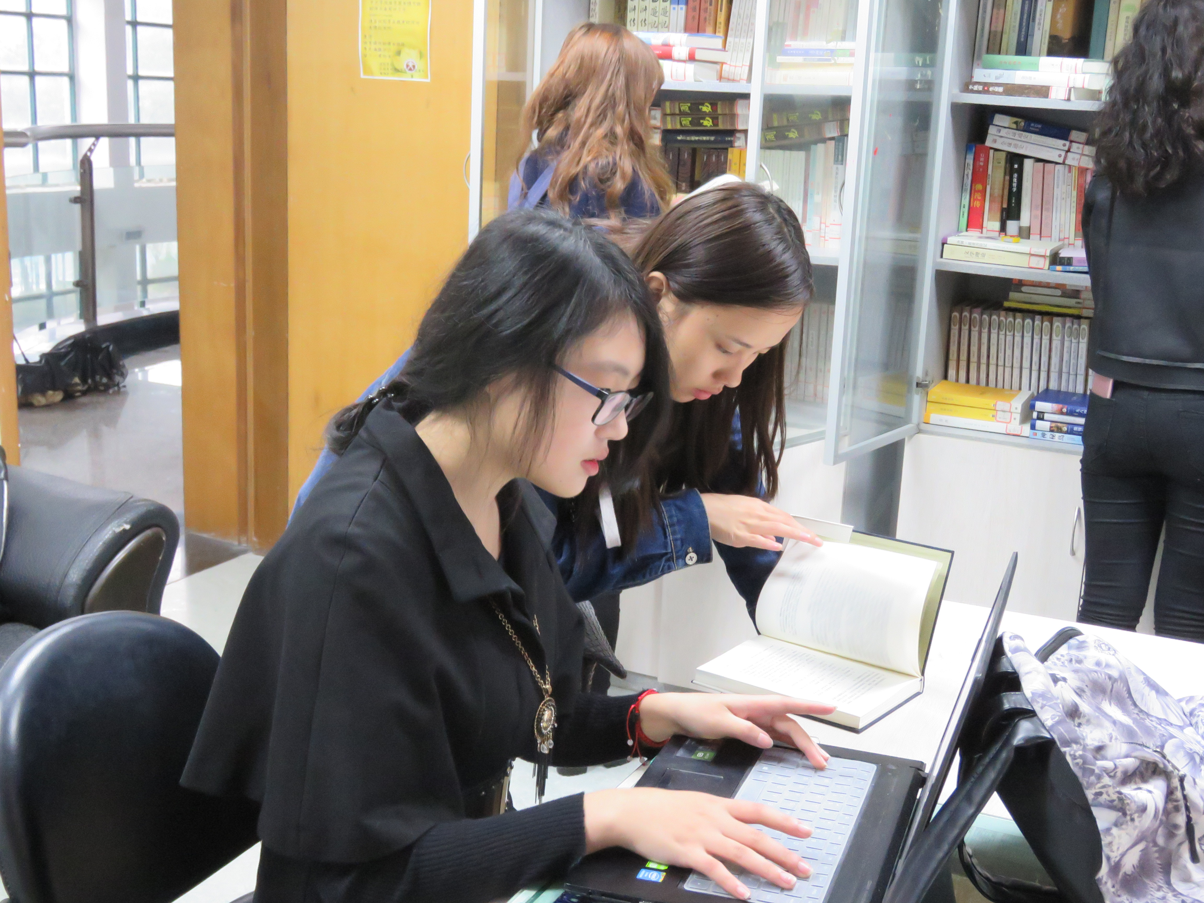 各寝室成员根据要求需集体阅读同一本书,并把自己的读书体会以对话记录的形式进行最后呈现,阅读的书籍则需从国学图书馆借阅。窗外大雨倾盆,但同学们阅读的兴致丝毫不减。各个寝室的负责人早早来到国学图书馆,在书架前仔细挑选自己寝室想要读的书。图书馆虽然占地不大,但是图书的丰富程度不容小觑,古今中外的名家作品均有涉猎。小小的图书馆里热闹非凡,《活着》、《倾城之恋》、《美的历程》等书籍成为大家争相借阅的对象。