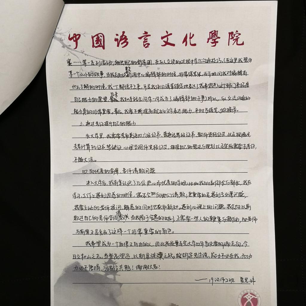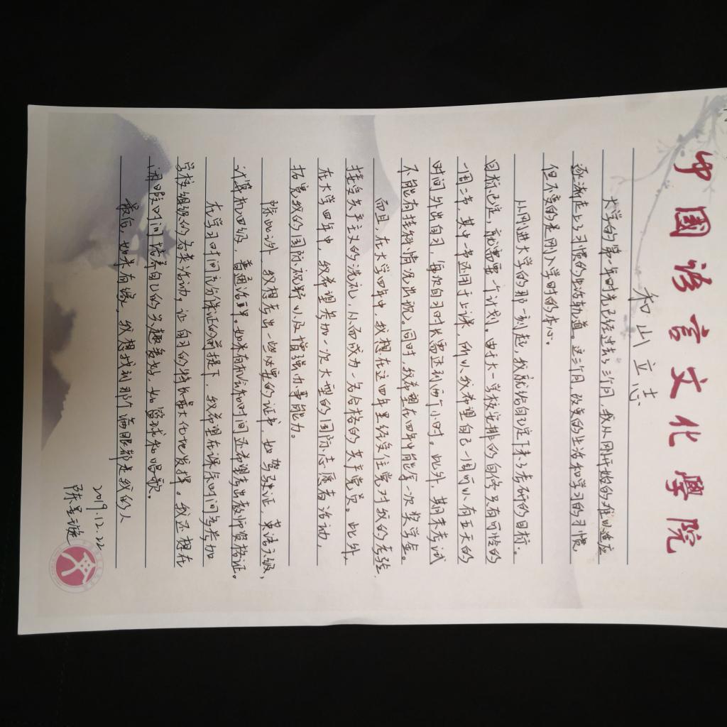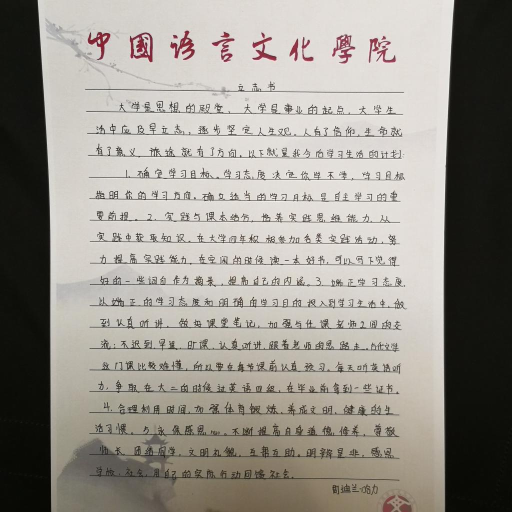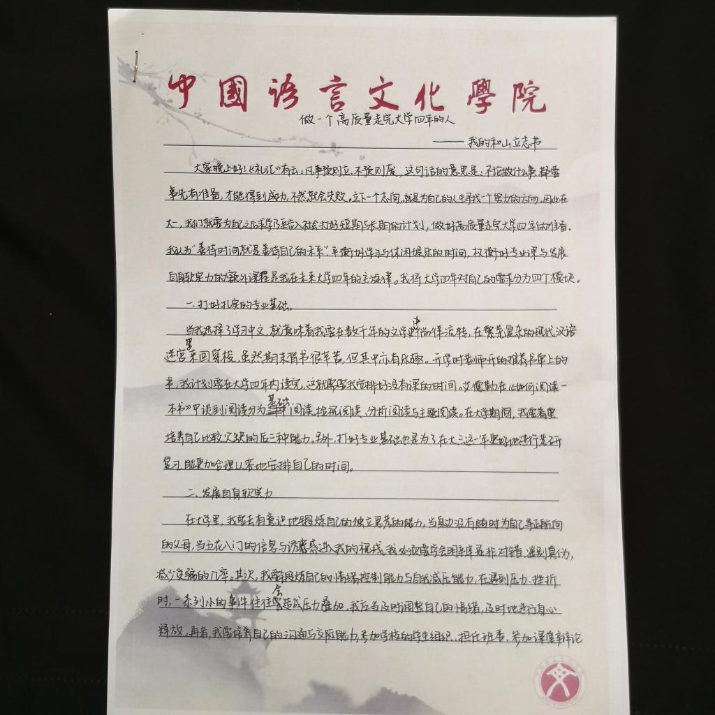 积极响应学校号召,面向全院在校学生开展了“一份立志书,一起来励志”活动,鼓励中文学子在求学路中立下志向、踏实前行。