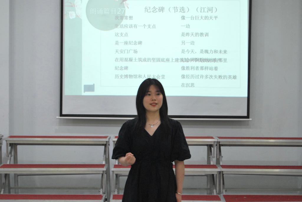 17名进入决赛的同学,从限定题库中自由挑选命题,经由古代篇目诵读、现代篇目诵读、主题演讲三个展示环节进行比拼。
