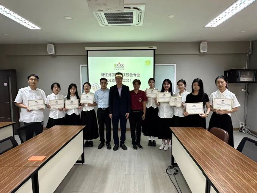 罗勇院长感谢9位见习生到格乐大学见习,对各位的成长表示欣慰,教育是多元的,此次见习不仅促进泰国格乐大学的汉语教学,同时也让当地学生有更多机会去说汉语。罗勇在总结中表示,总结交流会不仅是希望了解见习生在泰国格乐大学的见习情况以及在泰国的生活情况,还希望了解到目前格乐大学汉语教学还存在的问题。