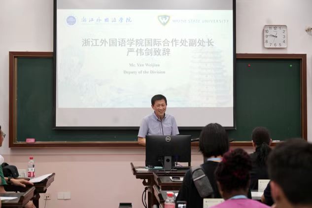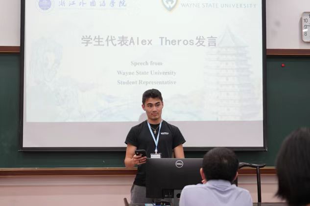 汉语国际教育专业学生代表马雨舟与韦恩州立大学学生代表Alex Theros都表示出对此次活动的期待与未来中美文化友好交流的展望。