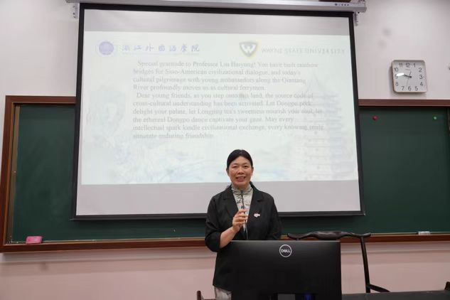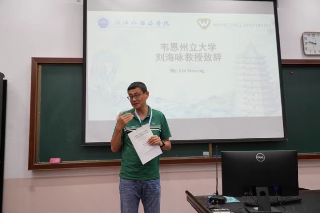 党委书记杨飞群详细介绍了“荷桂”国际化系列课程,同时对此次国际化课程提出殷切期许。此次活动从筹备到举办经历了两年的时间,韦恩州立大学教授刘海咏表达了对努努影视
