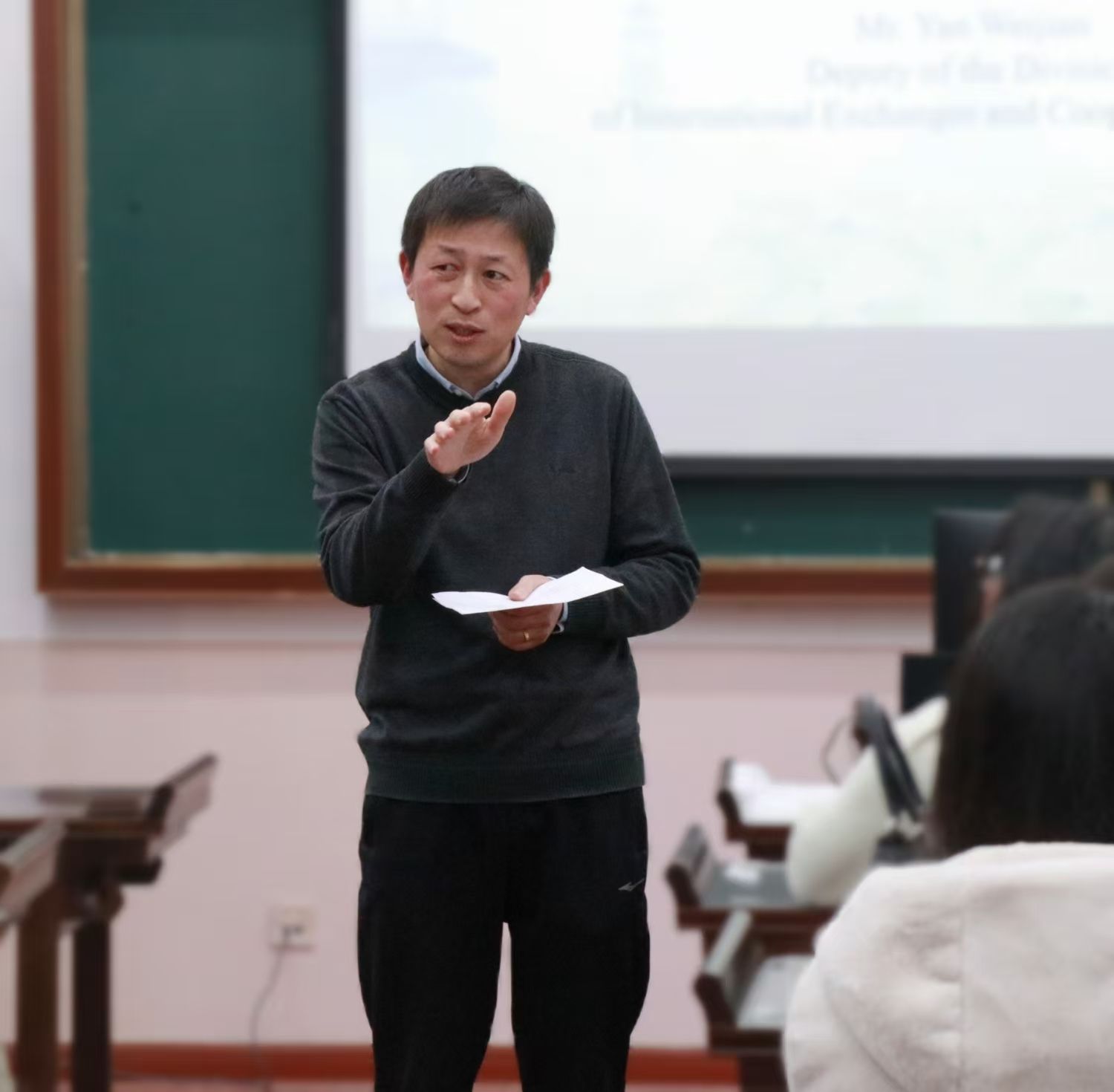 严伟剑副处长致闭营辞。他首先对泰国同学们在冬令营中的出色表现和显著进步表示热烈祝贺。同时严老师诚挚感谢努努影视
