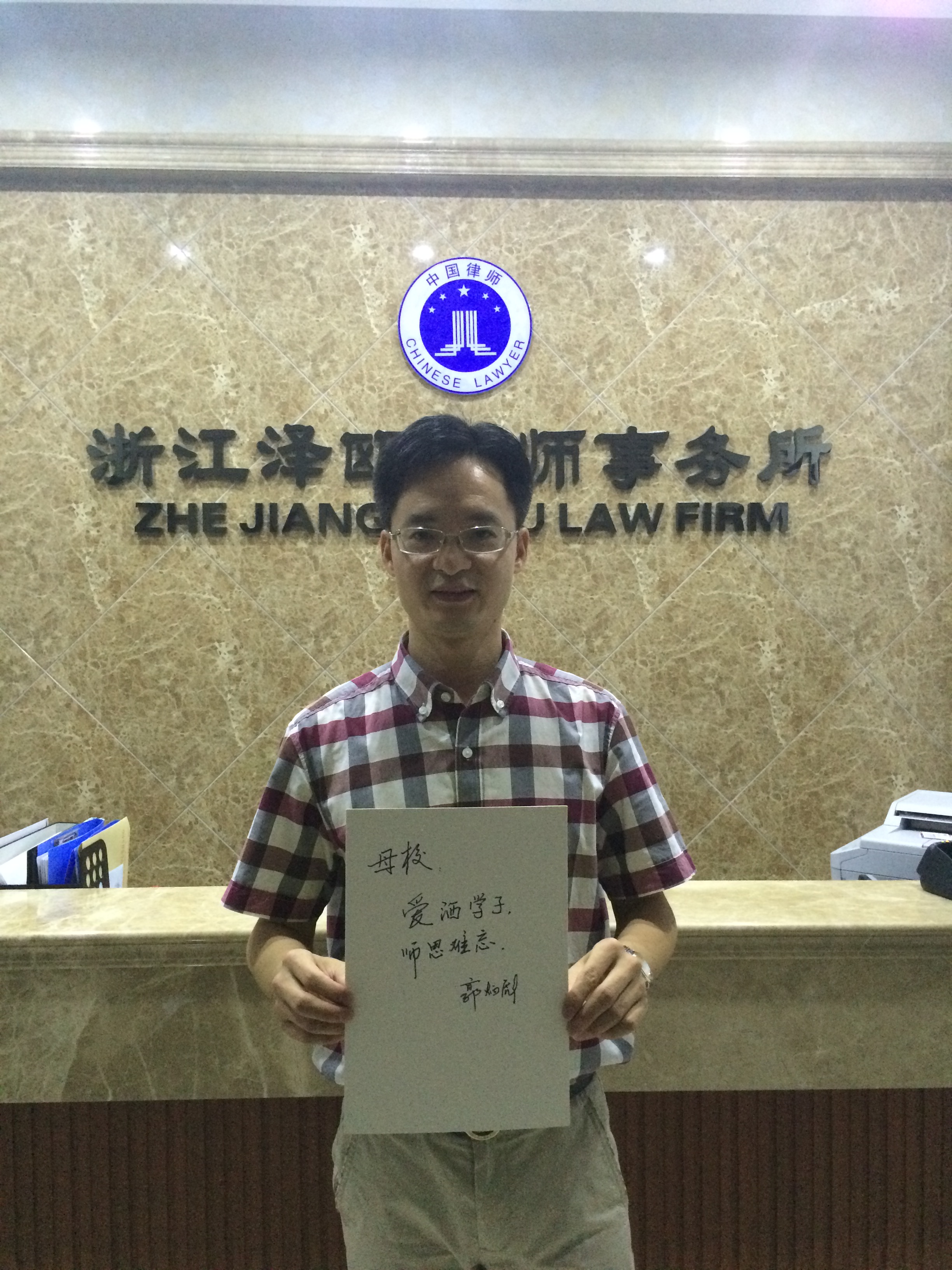 后记:虽然因为郭学长工作很忙,只能抽出四十分钟时间参加采访,但是我们还是从采访中收获了许多有价值的信息。最后郭学长写下的“爱洒学子,师恩难忘”八个字,相信也是我们所有浙外学子共同的心声。