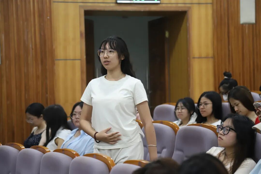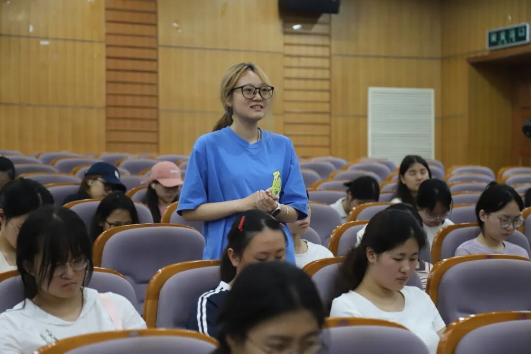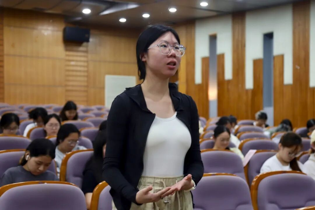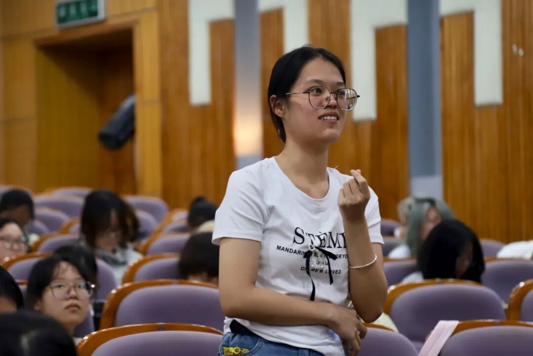 现场同学就自己对班主任工作的疑问积极举手提问,杨春林老师有针对性地一一解惑。他以自己多年教师生涯中遇到的典型案例为主线,就处理学生矛盾、管理顽皮学生、处理家校矛盾等问题进行分享,他指出,教师首先需具备成熟心态,做好心理预期,要学会在面临大小问题时泰然自若,以平和心态冷静而理性地处理问题;教师的行为在无形中影响着学生,应为人宽和、放大格局、胸怀宽广才能给学生树立良好榜样;班主任素养的关键还在于教师应具备扎实的专业能力,他建议同学们抓好本科阶段的学习,不断扩充自己知识储备,从容解决学生提出的疑难问题才能更好地树立教师威望。