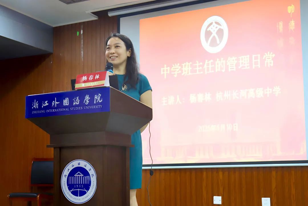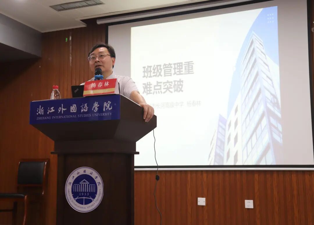 杨春林老师深耕教育领域,在班级管理和教学实践中不断积累经验,为大家生动讲述了他职业转折的过程。他多年来始终坚守教育一线岗位,致力于“扬翼”品牌班级的建设,连续5届被评为杭州市先进班级,积累了扎实丰富的班级管理经验。