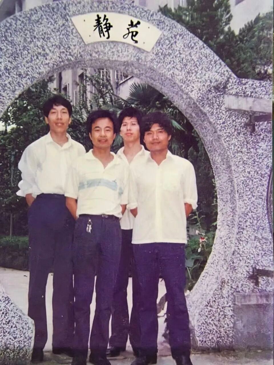 (作者与同学在校门口合影)
