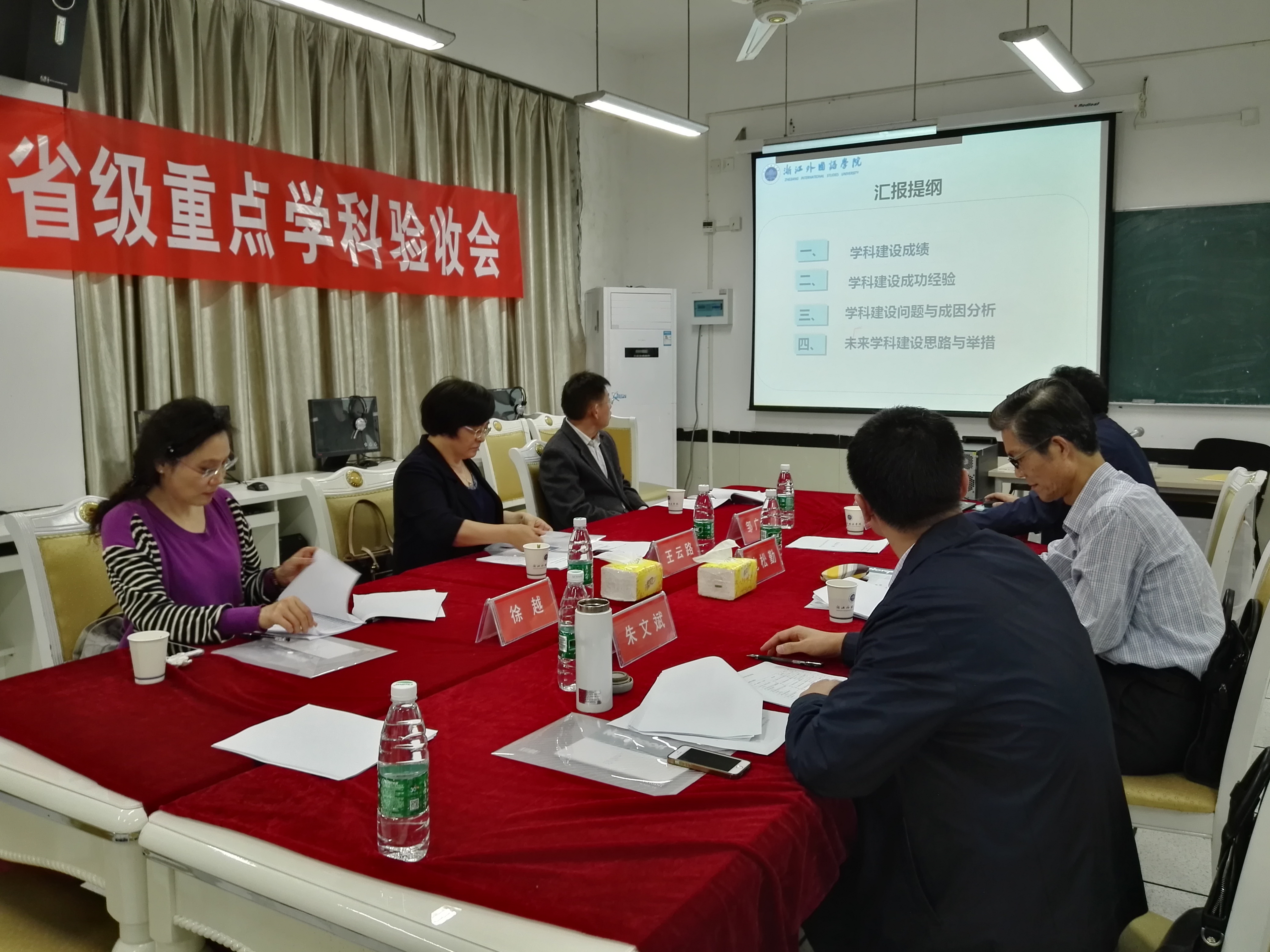 在小和山校区实验楼召开“中国语言与文化国际传播”省级重点学科验收会。浙江大学王云路教授、邹广胜教授、杭州师范大学沈松勤教授、徐越教授、浙江越秀外国语学院朱文斌教授等五位评审专家及校科研处、努努影视