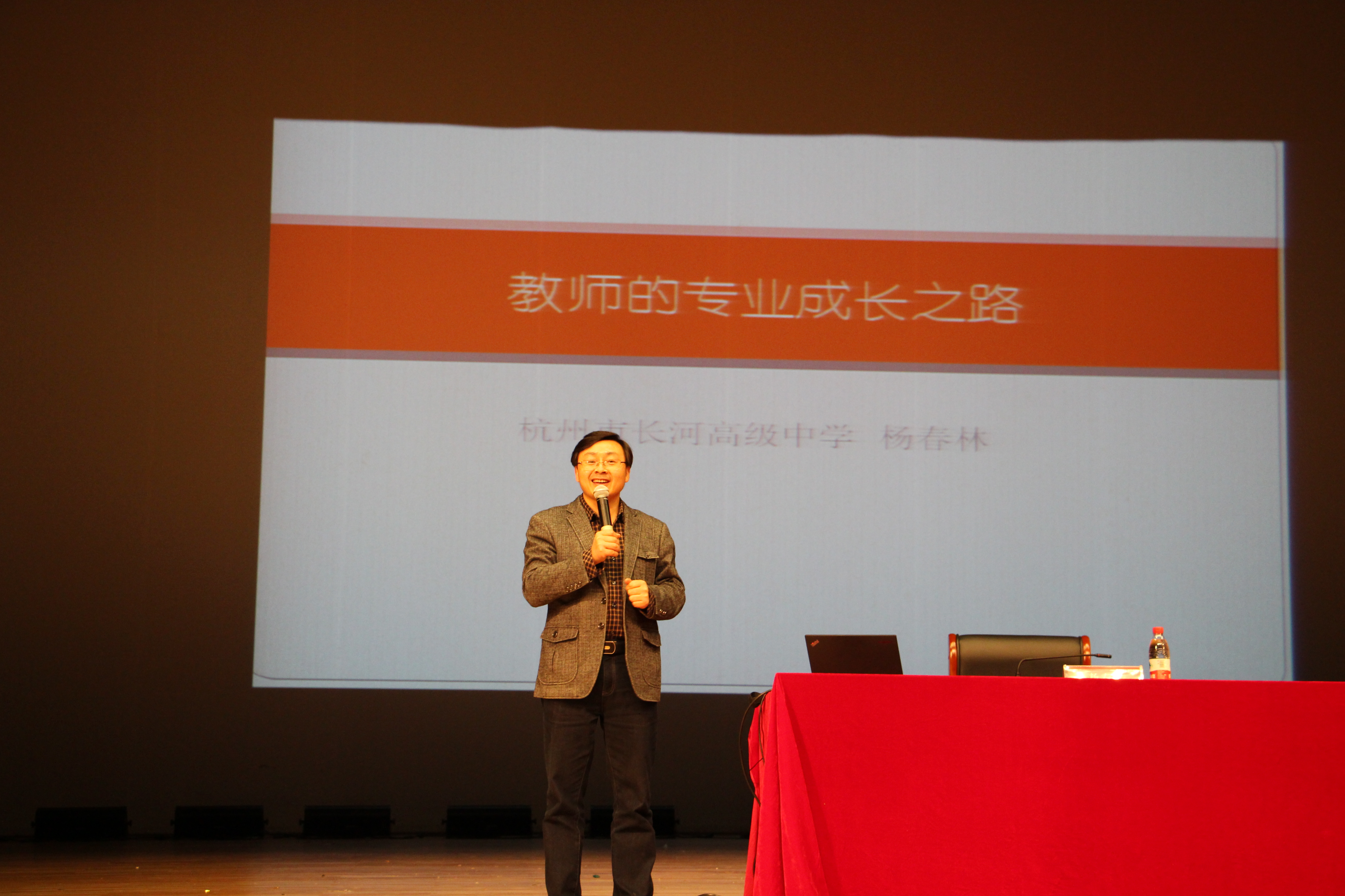 2015年11月2日,“校友会客室”开讲。邀请全国知名班主任工作教师,全国语文“新星杯”教学大赛高中组一等奖获得者,杭州市教坛新秀杨春林校友返校,为学生们开设了题为“教师的专业成长之路”的专题报告。报告中,杨老师从自己如何走上教师之路导入主题,阐述了教师教育中的种种案例,教育同学们坚定自己要走的路,并一如既往的努力;并同时强调大家要多读书,多走路,开阔眼界和视野,寻找正确的发展路径,为将来打下坚实的基础。