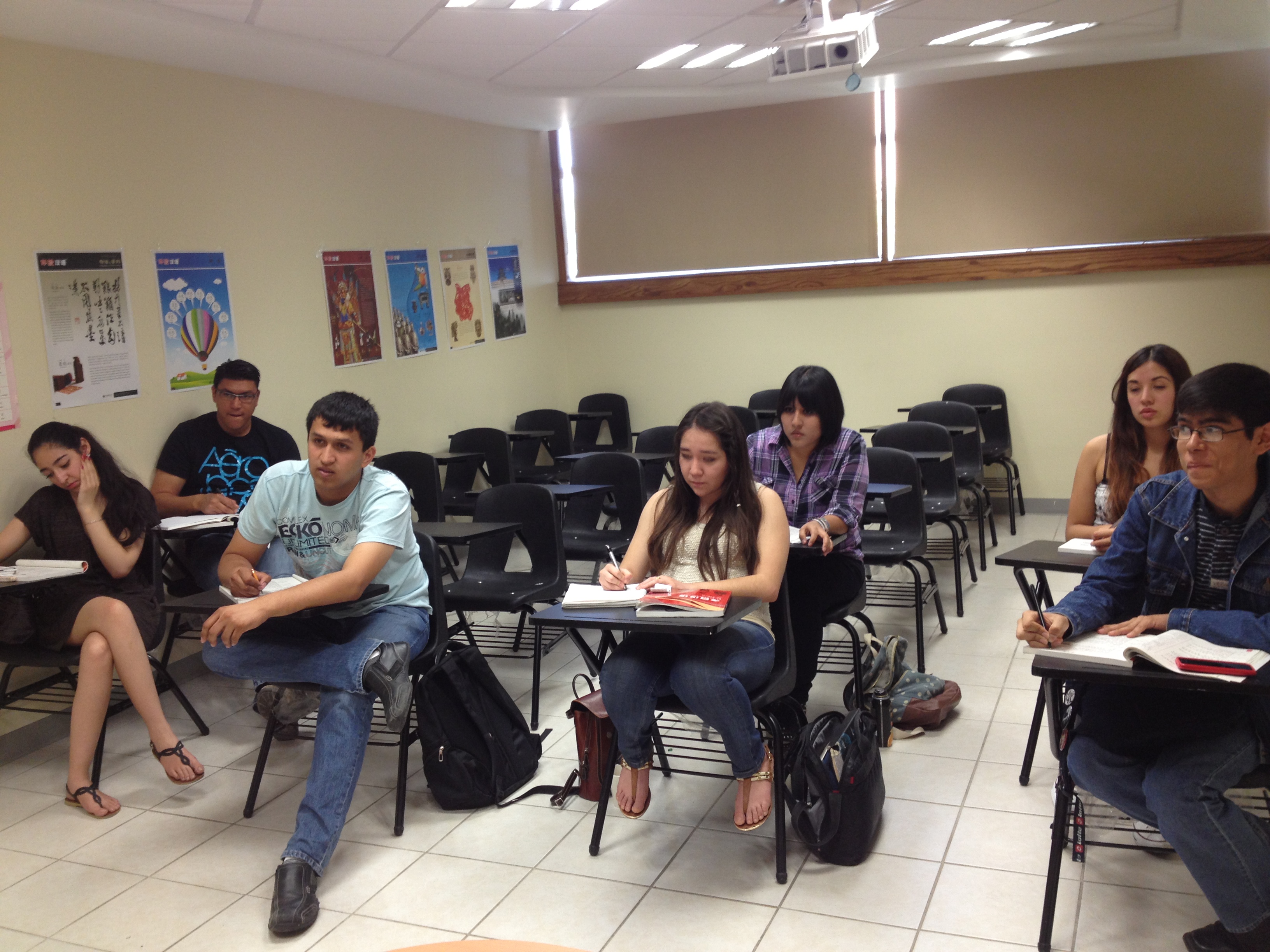 在奇瓦瓦,我们除了是学生外,还有一个更重要的身份就是在奇瓦瓦大学的孔子学院里做中文老师。作为汉语国际教育专业的大三学生,我们很荣幸,也很珍惜这样的机会,每个人悉心备课,希望在把知识教给学生的同时也能够从中得到更多的实战经验。短短几个月的相处,大家都有了深厚的感情在这里,我们是师生,更是朋友、家人。