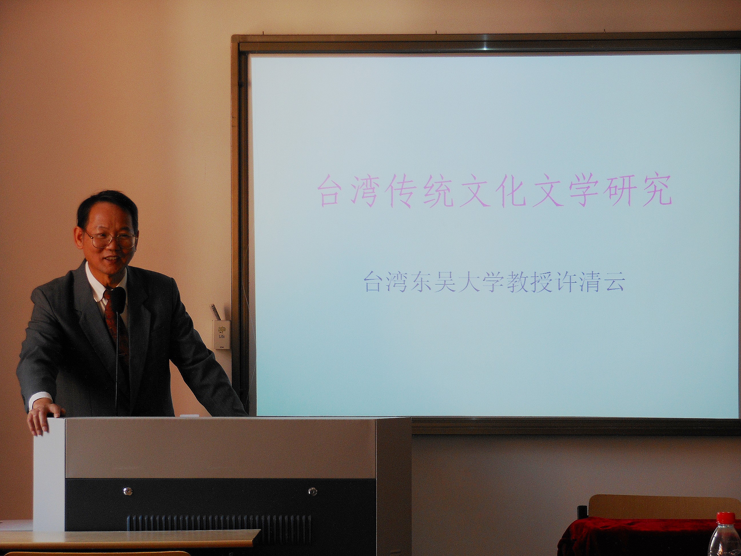 邀请了台湾东吴大学许清云教授为学院师生们做了一场精彩的报告。许清云教授是东吴大学中国文学系教授、中英文电脑数码输入法发明人、数位内容及技术研究室主持人。许教授重视中国传统文化的学习与传播,对唐宋诗词也颇有研究,本次许教授就台湾地区的传统文化文学研究为主题开展讲座。