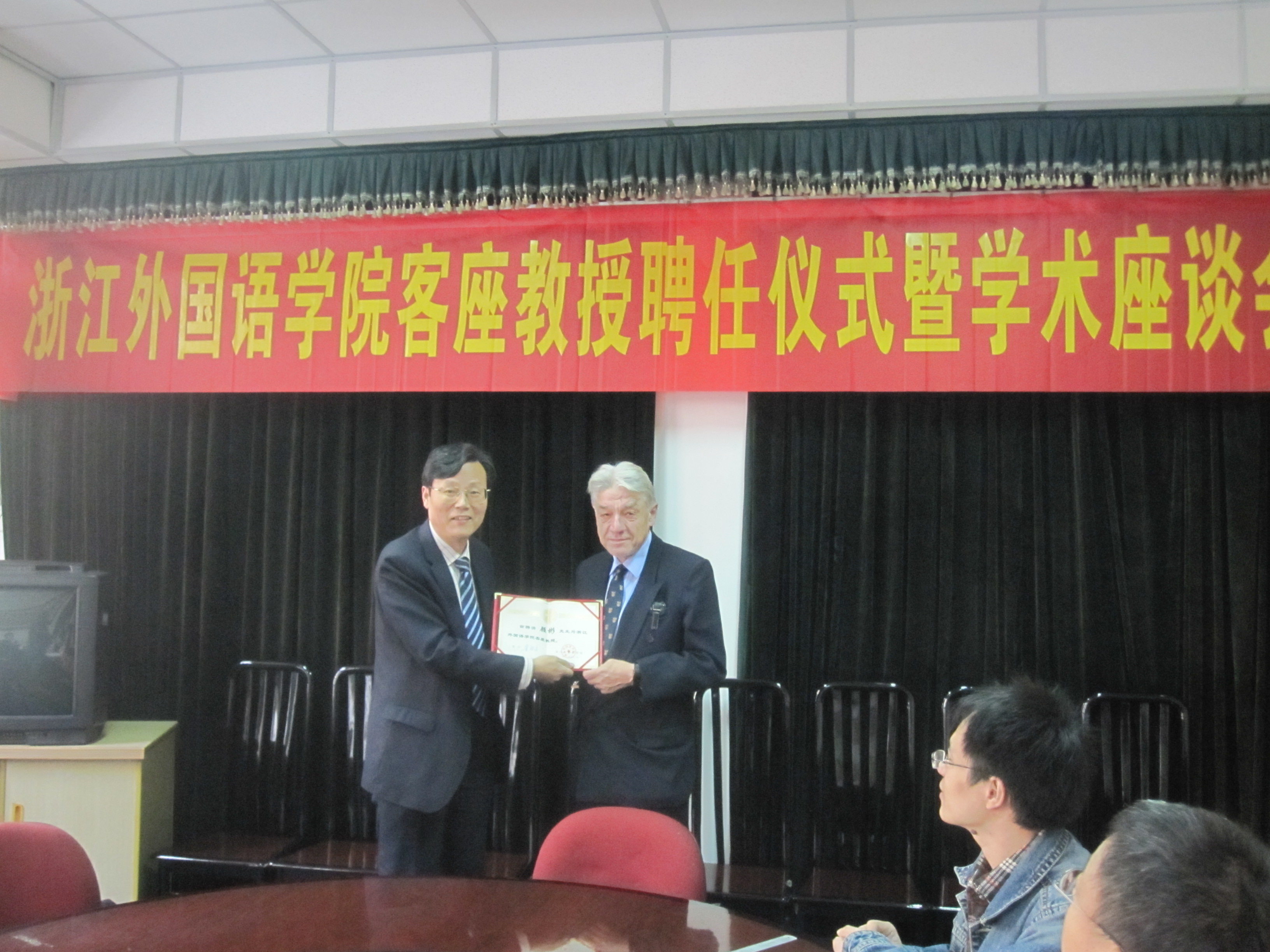 随后,顾教授与学院师生代表,浙江大学、浙江科技学院、浙江财经大学等知名学者举行了题为《莫言诺贝尔文学奖与中国语言文化传播》的学术座谈。顾教授分别从文学的语言、形式和内容角度,将中国现当代部分作家的文学作品进行了解读,对莫言文学作品文本和获奖系列因素进行了分析。从国际化视角探讨中国当代文学的特点和走向。并对自己新著的《二十世纪中国文学史》与其他中国现当代文学史进行了对比,提出自己对于文学史编著的个人观点。座谈会持续了近三个小时,热烈的讨论让师生们受益匪浅。