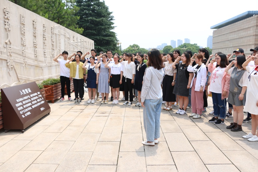 参观过后,学生党支部在南湖革命纪念馆北广场的宣誓墙前举行新党员入党宣誓仪式。老党员依次上前,为新党员们佩戴党员徽章,传承理想信念和党员精神,传递党员责任和使命担当。新党员们在支部书记的带领下,庄严地举起右手,郑重地宣读入党誓词,向党组织表达无限忠诚与热忱。