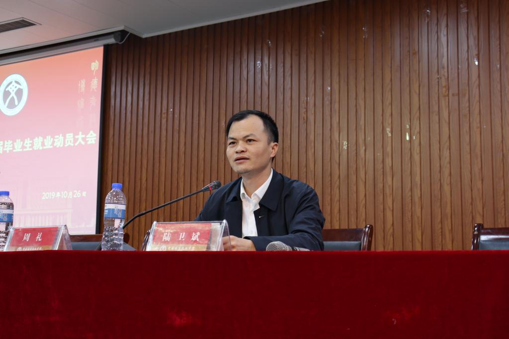 10月26日,努努影视 召开2020届毕业生就业动员大会。党总支副书记陆卫斌出席。学工办主任、毕业生辅导员周礼主持了会议。