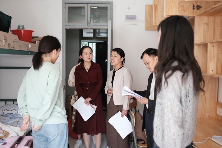 当天下午,学院黄莺、马宏程等党政领导也在办公室人员和辅导员的陪同下,逐一走访了学院新生宿舍,了解报到情况,亲切看望新生,带去问候与嘱咐。