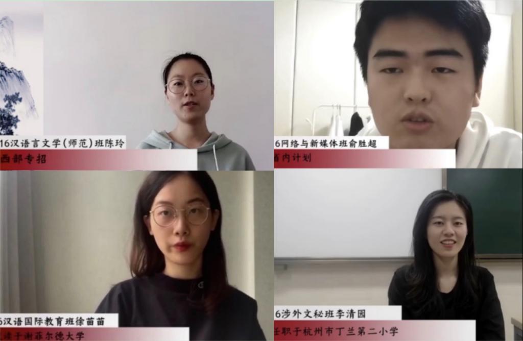 典礼上,学院播放了专门为新生拍摄的2020届优秀毕业学子祝福视频,学长学姐们结合自身参加大学生服务基层项目、考研升学、成才就业的经历,鼓励新生们和山立志,不负青春。