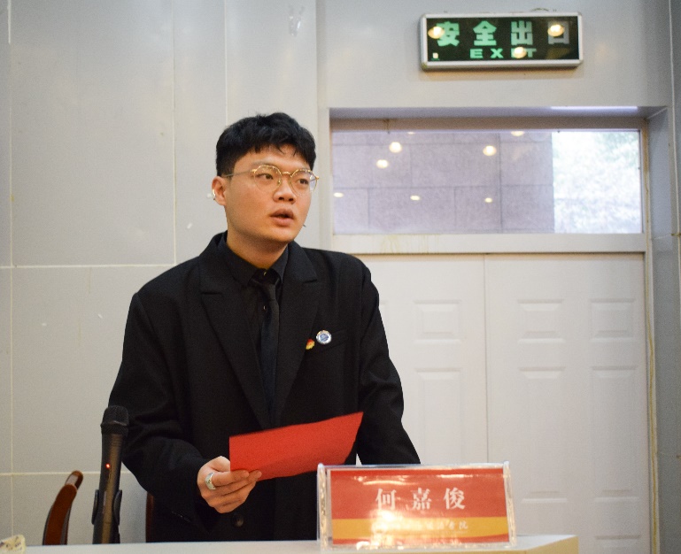 艺术学院学生会执行主席何嘉俊同学也在大会上致辞,对努努影视