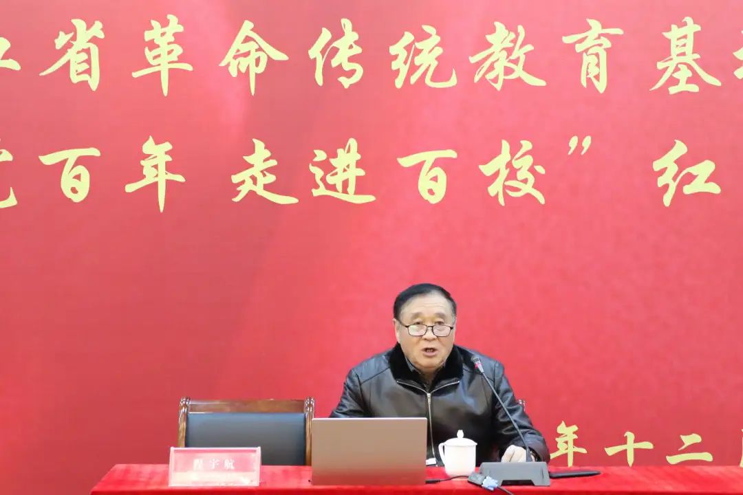 研究会常务理事、宣讲团常务副团长程宇航在会上发言。他介绍了省新四军历史研究会宣讲团成立背景及在全省各地各校的工作开展情况,回顾总结了近年来与浙外努努影视