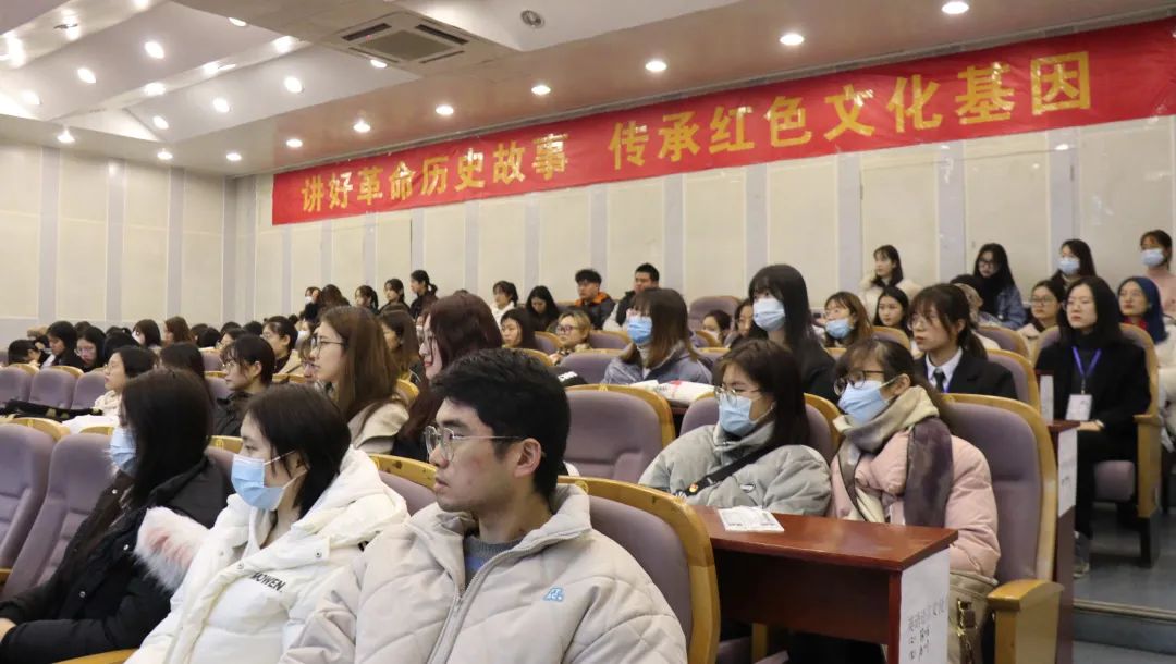 授牌仪式结束后,现场还开展了“建党百年 走进百校”红色文化宣传活动,程宇航、沈如如等老同志分别为来自全校的100余名党员发展对象和入党积极分子带来了题为《在新征程中坚定信仰》《致敬军魂——抗美援朝保家卫国》的精彩党课。