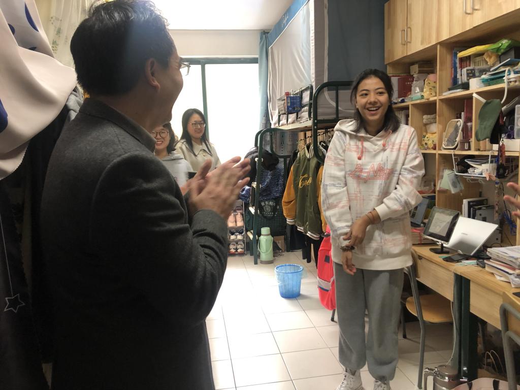 “家乡在哪里,有没有想家”“在学校的两个月了,大学生活还习惯吗”“平时学习和生活过程中有遇到什么困难吗”……徐部长的贴心问候令同学们倍感亲切,大家纷纷积极主动与徐部长交流近况,冬日里的宿舍中充满了别样的温馨。