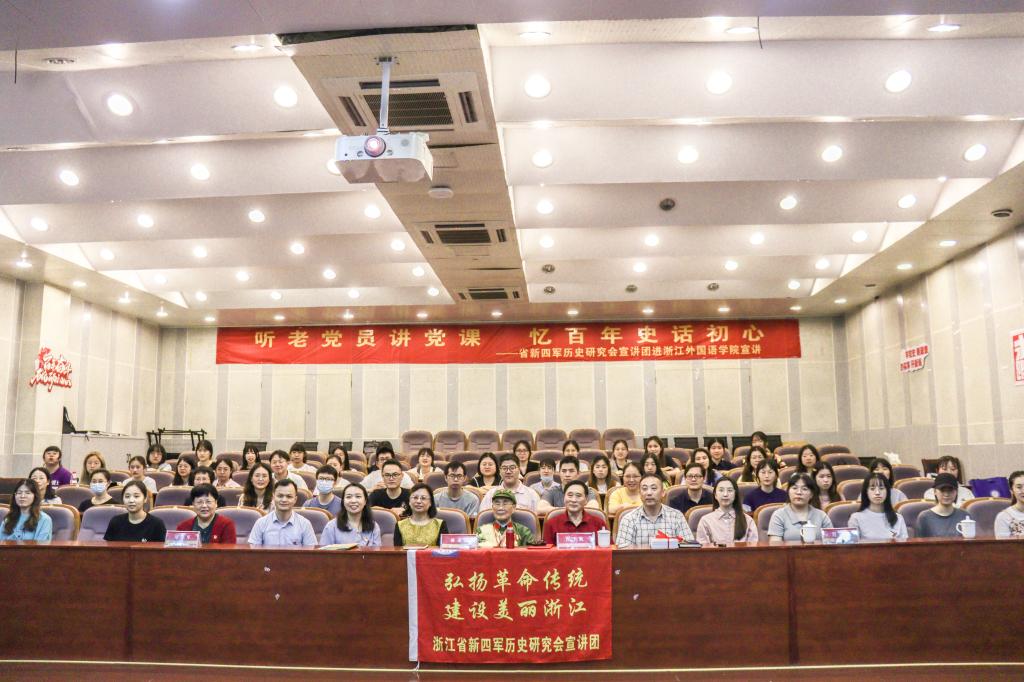 、教育学院、图书馆联合举办“听老党员讲党课,忆百年史话初心”活动。抗美援朝老兵郝龙清同志、省新四军历史研究会宣讲团常务副团长程宇航同志为师生党员上党课。