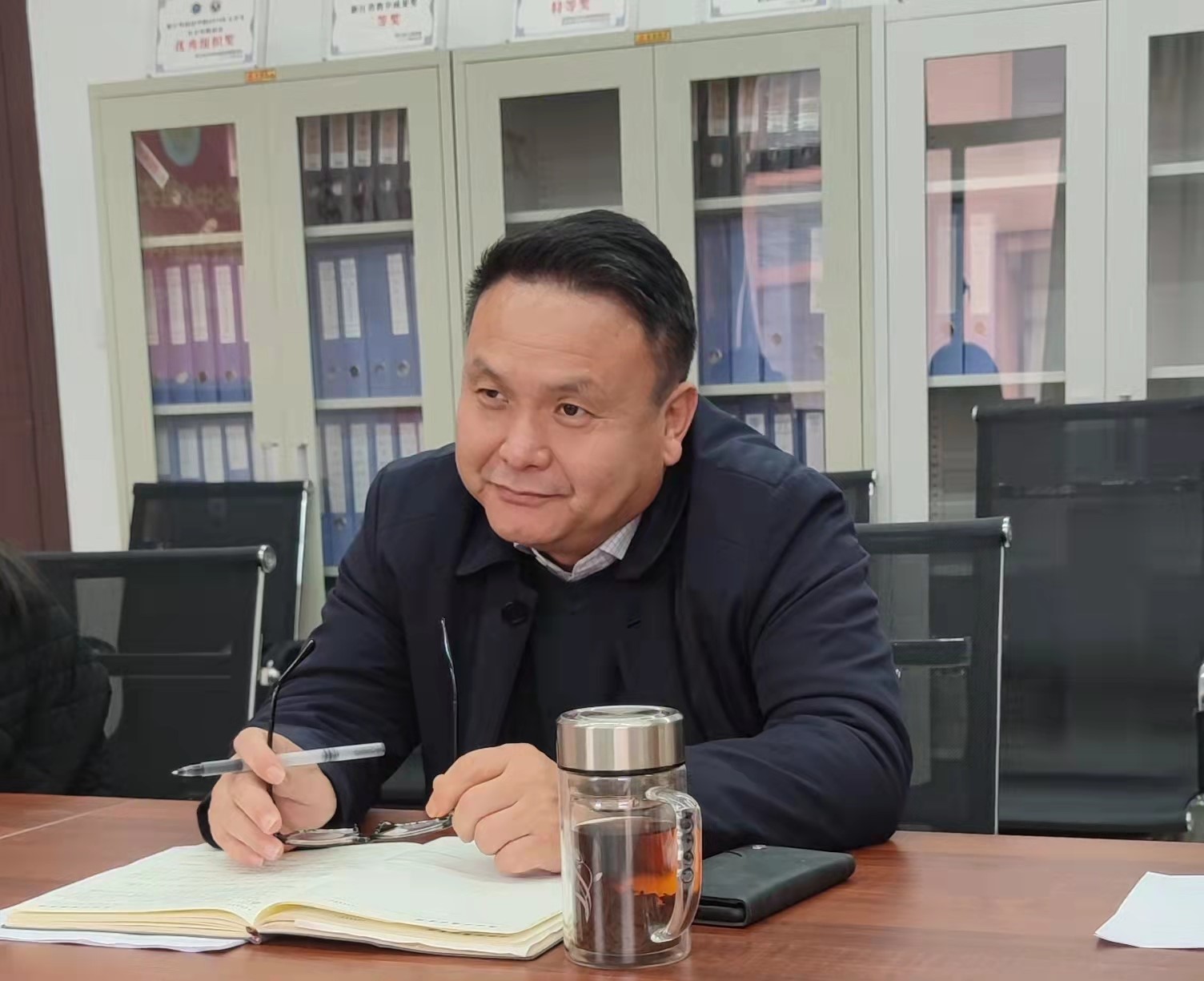 11月17日上午,校长洪岗、副书记曹仁清来努努影视
