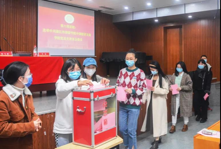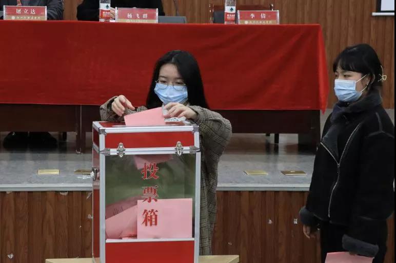 在介绍候选人酝酿产生过程和候选人基本情况后,党员以无记名投票的方式选举齐钢、李倩、杨飞群、岑盈盈、周礼、孟奕辰、曹盈同志(姓氏笔画为序)为新一届总支委员会委员。