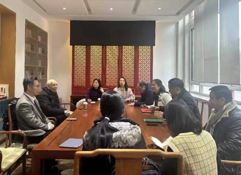 1月8日,在北大中国语言学研究中心,马宏程对陆俭明教授一直以来对学院的关心和支持表示感谢,并简要介绍了学院近年建设发展情况,希望北大中国语言学研究中心能够继续支持帮助学院发展。杨飞群介绍了学院发展构想,希望与研究中心搭建新平台、实现新合作。围绕“国际中文教育”的发展主题,陆俭明教授从学科建设、科学研究、人才培养、孔院建设等方面提出了指导建议;中国语言文学系副主任宋亚云针对师资队伍建设、科学研究、教师交流、学生实践等方面提出了可行性合作路径及建议;中国语言文学系潘建国教授在科研平台、期刊和文献数据库建设等方面也给与了倾力指导。
