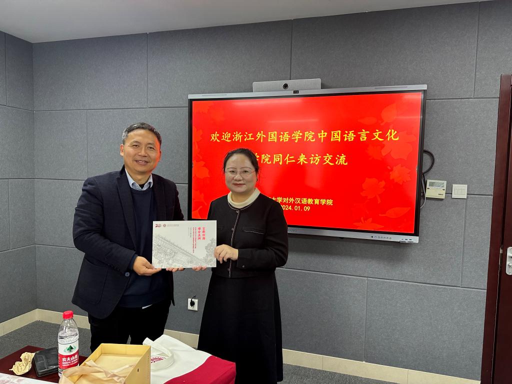 院长马宏程、党总支书记杨飞群、党总支副书记周礼一行赴北京大学调研学习,探索建立合作与交流机制,省级一流学科负责人、硕士点建设负责人樊宝英教授、省级智库浙江文化“走出去”协同创新中心执行主任赵红娟教授、学校宋韵文化研究所所长郝永教授、国际文化传播系主任邵静副教授、副主任齐钢副教授及相关工作人员参与调研。