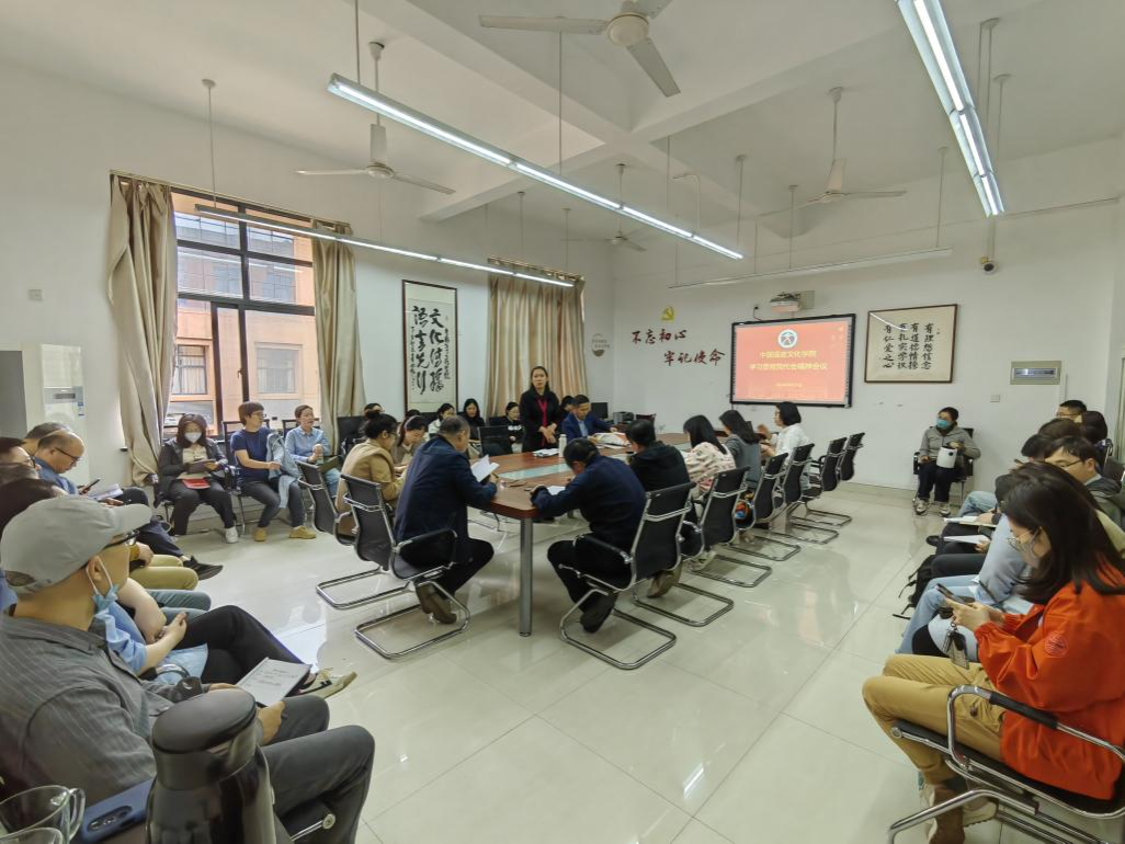 马宏程指出,学院牵头推进国际文化传播工作,对全体教师来说,既是千载难逢的机遇,也是前所未有的挑战。大家要坚定信心、抢抓机遇,充分聚焦学校、学院发展战略,积极转化个人研究方向,不断向学院构建的新的学科发展框架聚拢,形成有竞争性、有战斗力的人才团队,以“服务学校核心使命,传播中华优秀文化”为己任,推动院、校高质量发展。