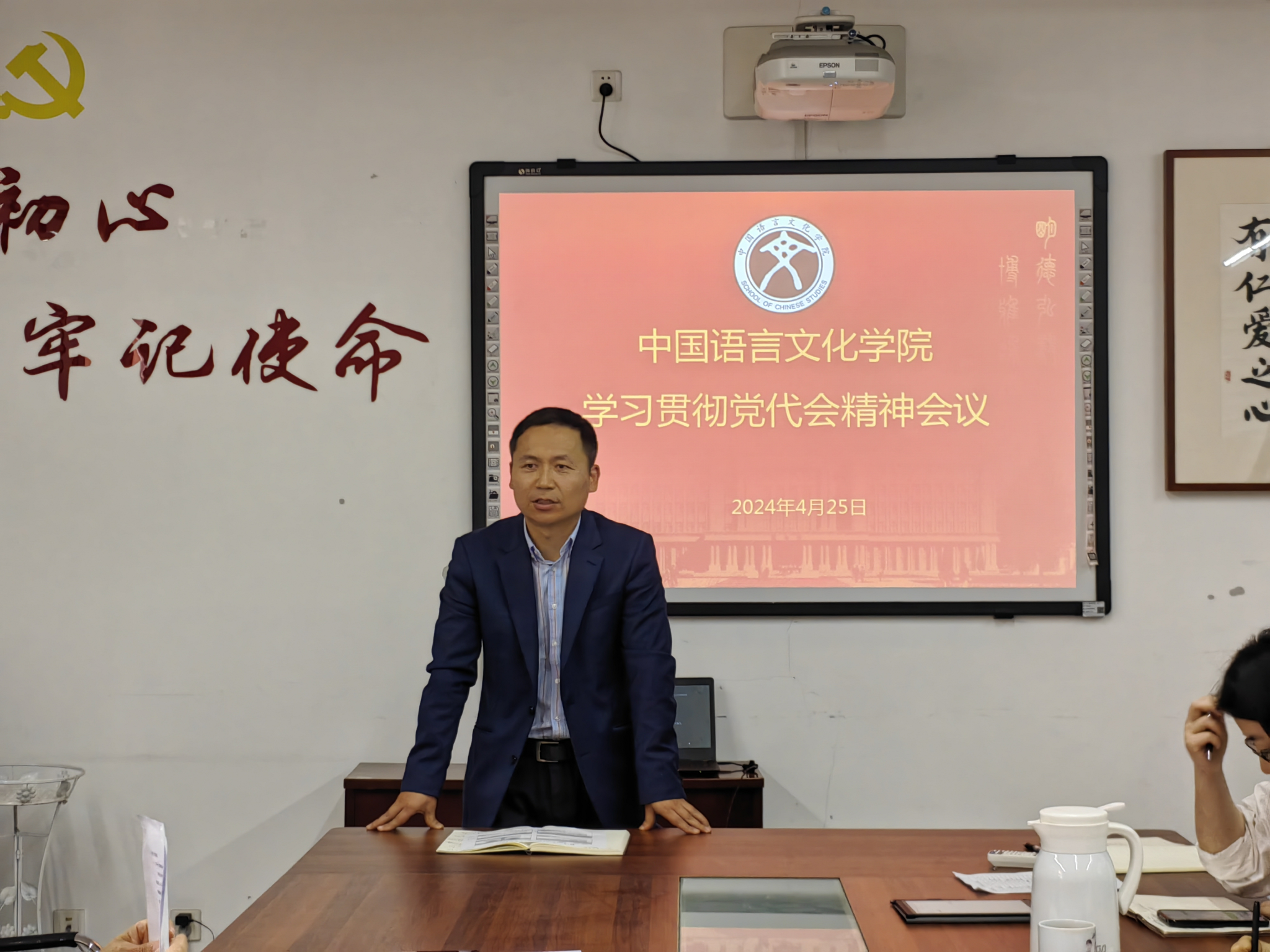 4月25日下午,学院召开学习贯彻校第三次党代会精神专题会议。党总支书记杨飞群领学了校第三次党代会报告,强调要坚持创新、坚持改革、坚持开放,做到“六个必须”,实行“三大战略”,全体教师要充分理解学校建设“国际知名以服务新型国际关系为特色的外语名校”这一定位,牢牢把握与北大合作契机,充分聚焦学科发展方向,把党代会精神落实到具体每项工作中。