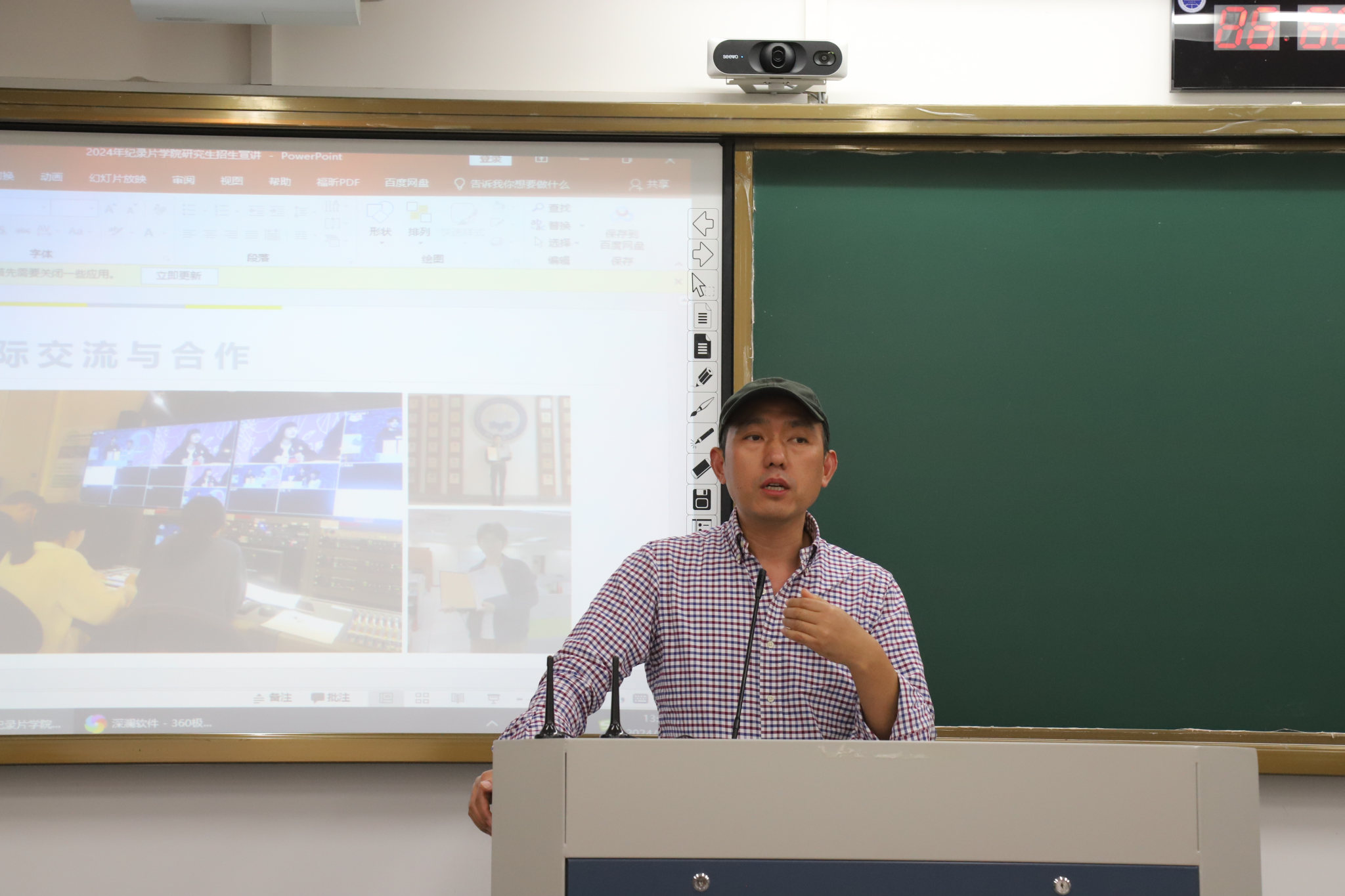 在宣讲会上,孙健副院长介绍了上海纪录片学院研究生教育的基本概况,强调了其由理论、技能和创作三部分组成的教学体系,旨在提升学生的综合素养与实践能力。他还提到了学院的“双师制”教学模式,即学生可同时接受行业专家和学术导师的指导,并指出学院提供了高水平的教学平台及丰富的校内外资源,包括遍布全国各地的实训基地。此外,通过与上海电视台、澎湃新闻等机构的合作,学生有机会参与实际项目,积累工作经验。