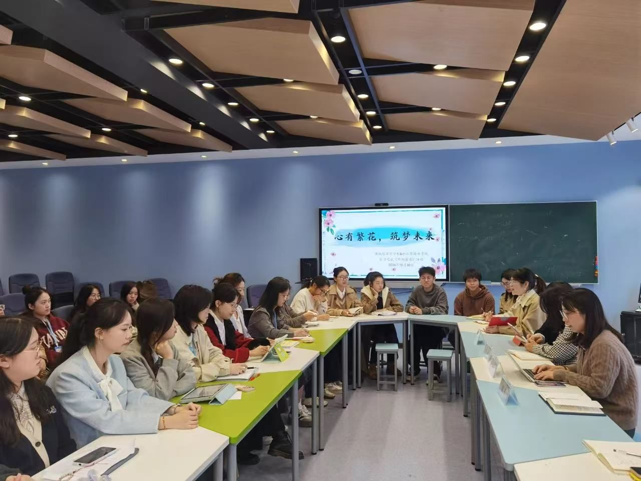 (马宏程与采荷中学实习学生交流)