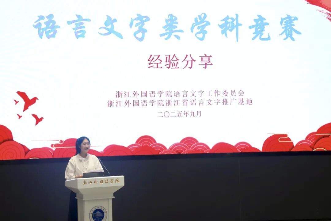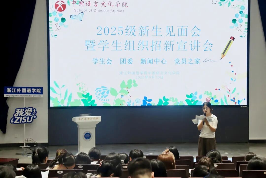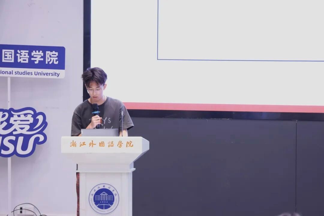 随后,学院响应推广普通话的号召,邀请24级汉师徐子涵为新生分享学科竞赛经验。徐子涵介绍了中华经典诵读大赛和语言文字能力大赛的内容,结合自身及同学经历给出备赛建议,强调参赛能带来成长与能力提升,并鼓励新生将比赛视为探索的机会大胆尝试,创造精彩的大学生活。