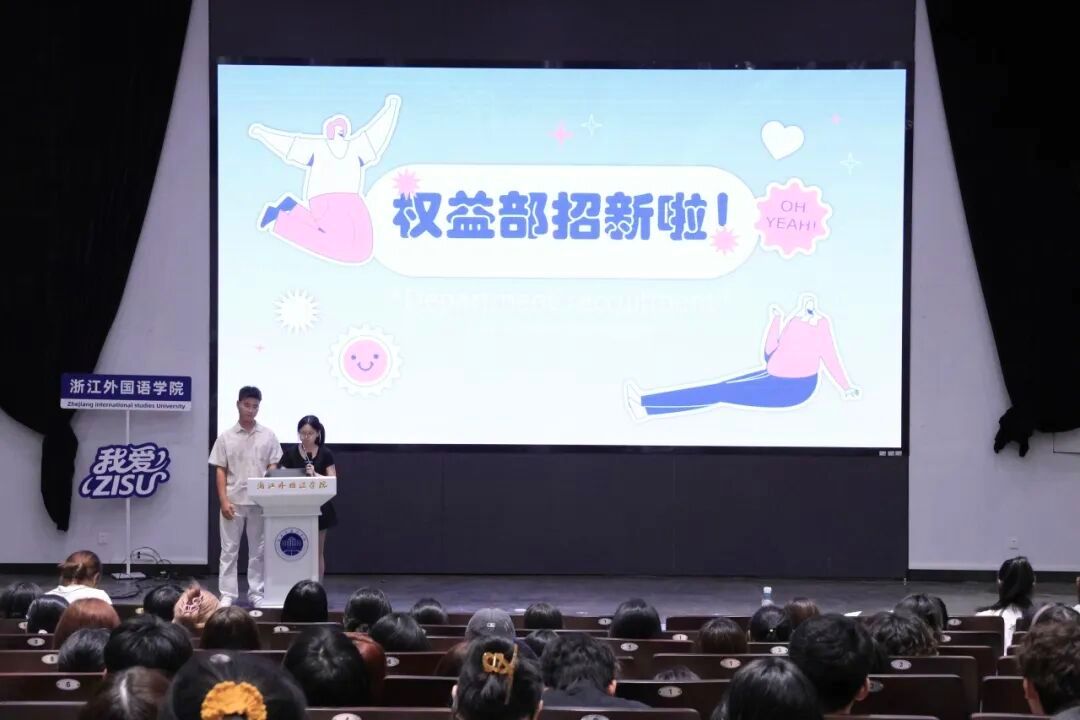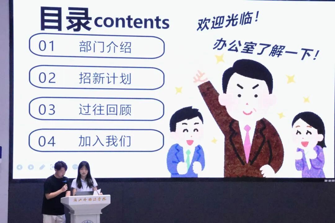 四大组织的负责人们通过热情的讲解,趣味盎然的PPT,介绍了各自部门的职能特点,鼓励学生积极加入学生组织,在实践的过程提升能力,不断成长。
