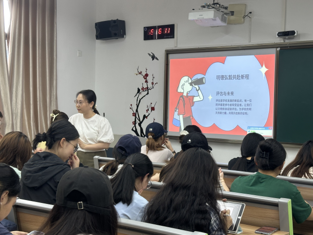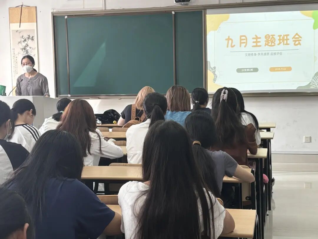统筹部署,组织全院各班级有序开展“文明修身·学风提质·迎接评估”主题班会。通过向同学们介绍本科教育教学审核评估的核心指标、考察重点与重要作用,明确了评估不仅是对学校教学质量的检验,更是提升自身学习环境与成长平台的重要契机。