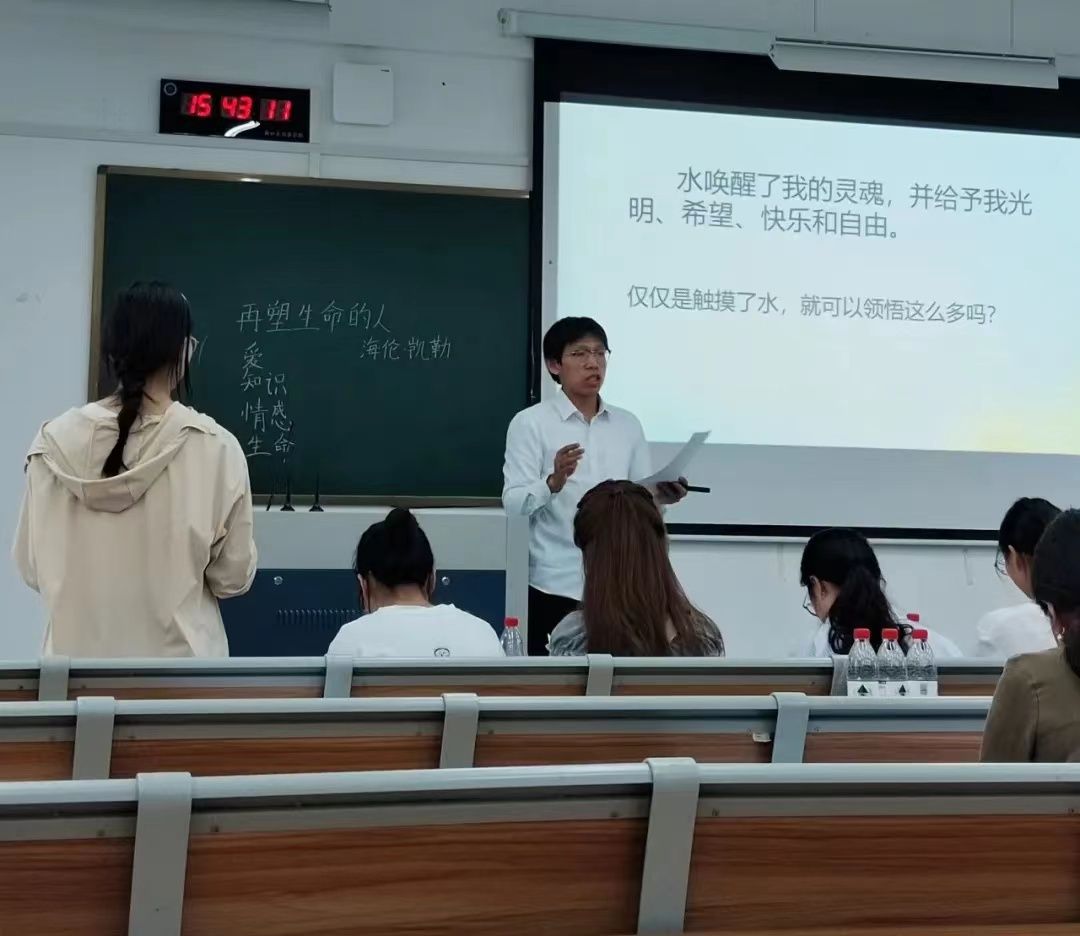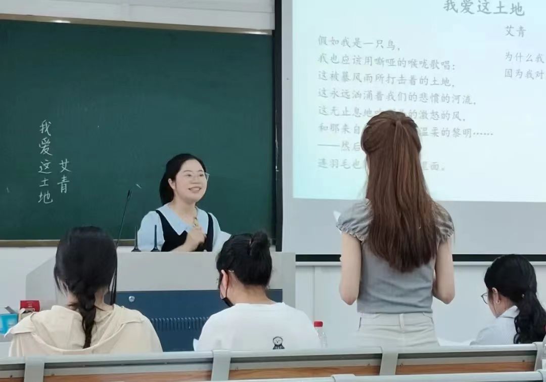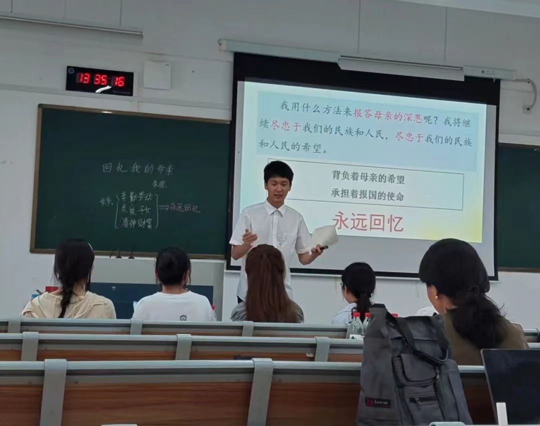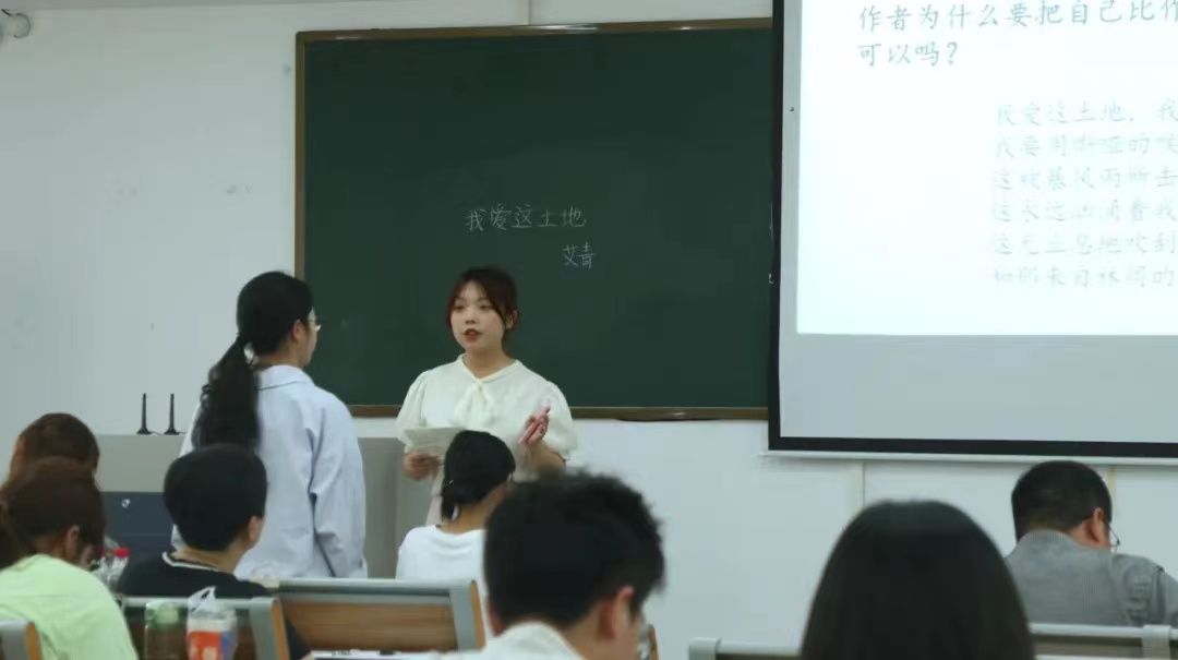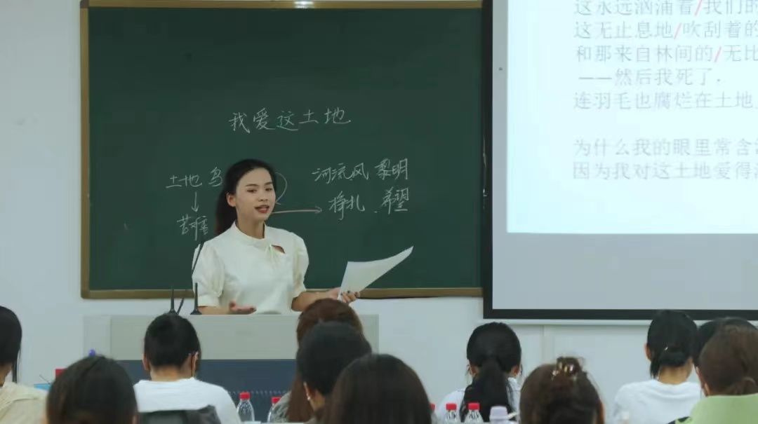 选手们从《回忆我的母亲》《我爱这土地》和《再塑生命的人》这三篇课文中随机抽选一篇进行试讲。比赛中,选手们或以情景模拟带学生走入课堂,或以小组讨论形式展开课程重点,以整洁的板书、自然大方的教态,富有激情的讲解,充分展现其扎实的基本功。