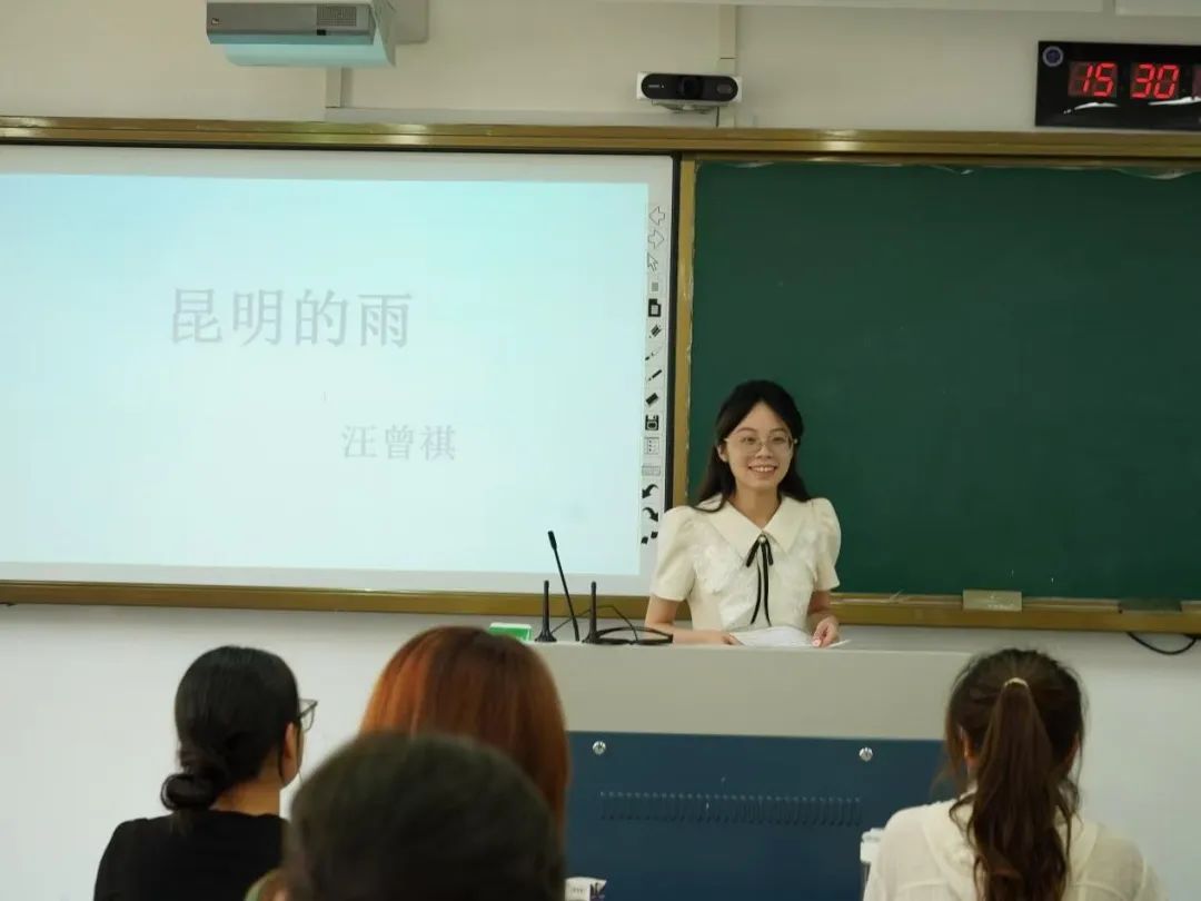 选手们从《我的白鸽》《紫藤萝瀑布》和《昆明的雨》这三篇课文中随机抽选一篇进行试讲。比赛中,选手执笔如行云,教态从容展风华;或引诗情入课堂,或启思维破迷障,声情并茂间,教与学共绽芳华,充分展现其扎实的基本功。